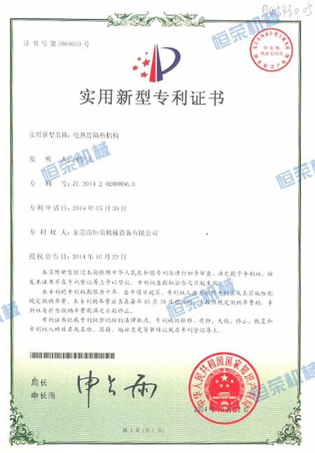 專利證書-電熱管隔熱機構